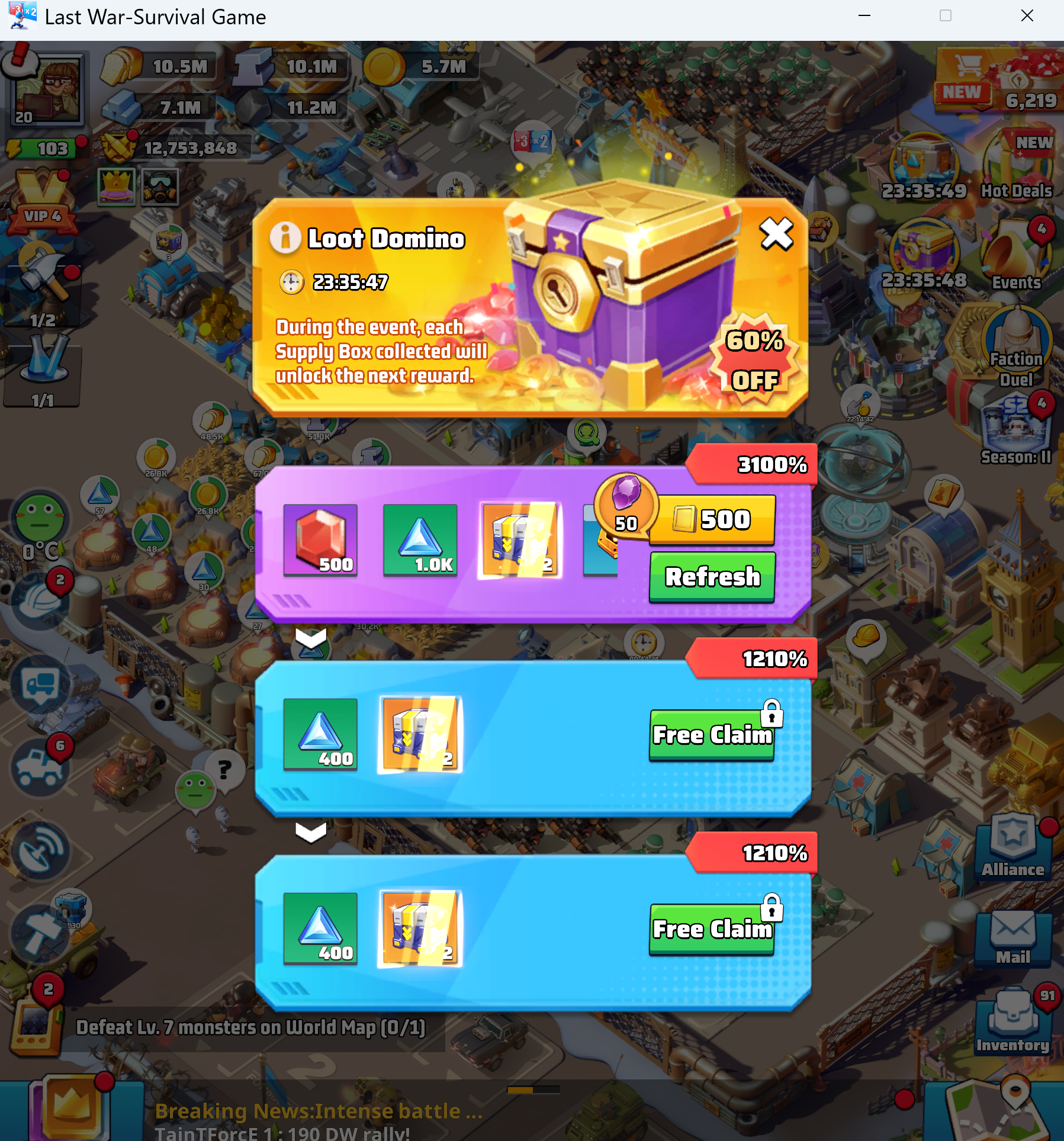 - a recreation of the auto-clicker app VP functionality with the Windows App version of Last War. - Additional functionalities: ---- Retarts the app every 5 mins. ---- Has functionality to check for pop-ups when app reloads (currently only handles lot domino) - Additional Files: ---- Has bare-bone scripts for alternative bot methods: via bluestacks/adb or using library pywin instead of win32. ---- Has initial import of image-processing library pytesseract. ---- Has image reference folder of some images to be used to optimize the bot. - Limitations: ---- Has to use mouse cursor (doesn't work in background) ---- Initial game file to launch is hard coded for dev location ---- Click locations associated with dev environment dimmensions, not dynamically derived.